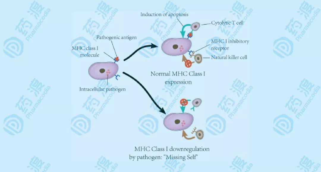 當細胞在病毒感染向腫瘤轉化期間,產生了應激壓力或DNA損傷,就會產生胚系編碼配體(germ-line ligand),這些配體可以被NK細胞表達的胚系編碼受體(germ-line receptor)識別。而當細胞出現低表達MHC-I的情況時,就會觸發“丟失自我”殺傷機制。因此為了最大程度地減少對正常細胞或組織的殺傷,必須微妙的平衡這種激活或抑制的信號,以調節NK細胞的活性。