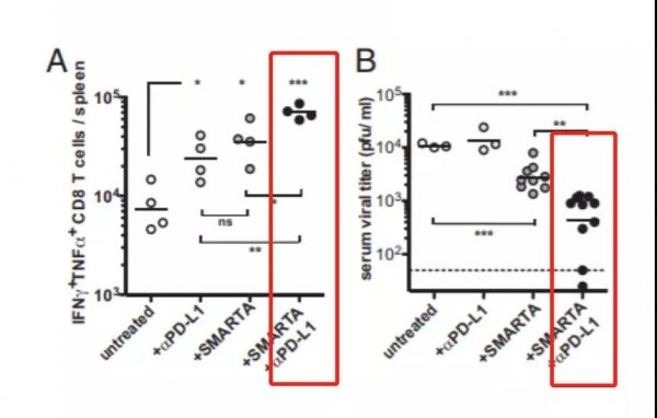 原本衰竭的CD8+T細(xì)胞重新恢復(fù)了活力!慢性感染小鼠體內(nèi)的CD8+T細(xì)胞又開始大量繁殖并發(fā)揮作用。