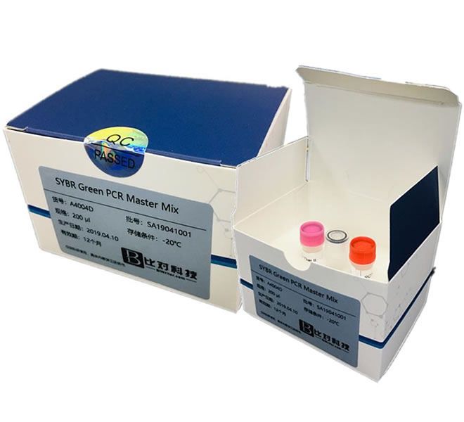 2×SYBR Green PCR Master Mix 是采用 SYBR Green I 嵌合熒光法進行 Real Time PCR 的專用試劑。含有常溫下完全封閉 Taq 酶活性的熱啟動酶 HS Taq DNA Polymerase,能夠有效抑制低溫條件下引物非特異性退火或者引物二聚體引起的非特異性擴增,提高擴增反應的特異性。本試劑經過特殊配制,采用優化配方的qPCR 專用 Buffer,大大提高了 qPCR 反應的擴增效率和檢測靈敏度,可以在較寬的定量區域內得到良好的標準曲線,準確進行定量。本試劑與多數廠家的熒光定量 PCR 儀兼容,如 Applied Biosystems、Eppendorf、Bio-Rad 和Roche 等。