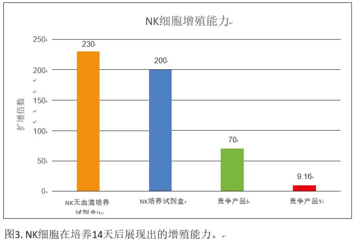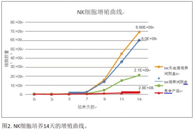 康寧NK無血清培養試劑盒II在無其他細胞因子(如IL-2)的條件下可以獲取較高的NK細胞增殖。