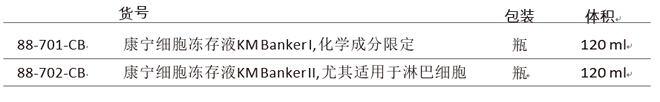 KM Banker產品系列是即用型細胞凍存液,專用于無血清培養條件下細胞的長時間低溫保存。該系列產品在多種哺乳細胞上經過驗證,能夠保持細胞活性并提高細胞復蘇效率。 KM Banker 系列含兩個產品: