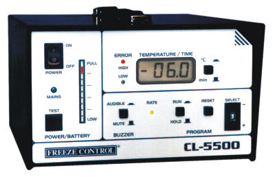 CL-8800i: ![]() CL8800i FREEZE CONTROL程序降溫儀主要參數 標準冷凍罐(可根據用戶需求配其他尺寸) 容 積: 23× 0.5ml 或者46× 0.25ml 最高冷凍速率: ~8℃/分鐘(在20℃時) 最高升溫速率: ~15℃/分鐘(在-43℃時) 尺寸(帶蓋): 直徑70mm,高170mm 重 量: 250g 監 控 范 圍: +200℃與-200℃之間 控 溫 范 圍: +40℃與-120℃之間 報 警 溫 度: ~±1.5℃偏離 測 溫 探 頭: 鉑 溫 度 顯 示: 數字式液晶顯示,分辨率0.1℃ 電 量 消 耗: 小于60瓦 電 源 輸 入: 100-260V 50/60Hz 耗 氮 量: 小于1升/小時 主 控 器 尺寸: 195×225×90mm(W×D×H) 主控器安全工作溫度范圍 : +40℃與-0℃之間 主控器安全保存溫度范圍 : +50℃與-10℃之間 主控 器 重量 : 1.9kg 總重(含箱): 9kg CL5500 ![]() CL5500 FREEZE CONTROL程序降溫儀主要參數 (內置可充電電池) 標準冷凍罐(可根據用戶需求配其他尺寸) 容 積: 23×0.5ml 或者46×0.25ml 最高冷凍速率: ~8℃/分鐘(室溫) 最高升溫速率: ~15℃/分鐘(在-43℃時) 尺寸(帶蓋): 直徑70mm/高170mm 重 量: 250g 控 溫 范 圍: +20℃與-43℃之間 報 警 溫 度: ~±1.5℃偏離 測 溫 探 頭: 鉑 溫 度 顯 示: 數字式液晶顯示,分辨率0.1℃ 記 時: 數字式,石英晶體 充 電 電 池: 12V/6Ah 電 池 類 型: 密封酸鉛電池 電 池 尺 寸: 150×100×65mm 充 電 速 度: ~1Amp 冷凍罐使用溫度:+50℃與-196℃之間 溫控器使用溫度: +40℃與0℃之間 溫 控 器 尺寸: 118×192×220mm 重 量: 6kg(帶電池) 總重(含箱): 12kg ![]()