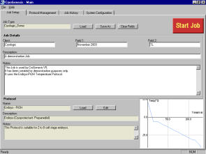 CryoGenesis™ V5 軟件是由 CryoLogic 發展的用于 FREEZE CONTROL®可編程程序降溫儀 (, CL-8800i, CL-3300)。 它是全新的,簡單的用戶界面和先進的記錄關系系統,還有 USB 數據接口。 CryoGenesis V5 特點: 可編制個性化的溫度控制程序 程序的執行是收到監視和控制的 冷凍操作的信息也被記錄 冷凍操作可快速、簡單起始 可顯示記錄的冷凍室(Cryochamber)中的溫度 可保持所有的過去的冷凍操作歷史。 CG V5 可在 Windows 95, 98, ME, NT, 2000 和 XP 操作系統下運行,同時可執行其它程序。 CryoGenesis™ V4 CryoGenesis™ V4